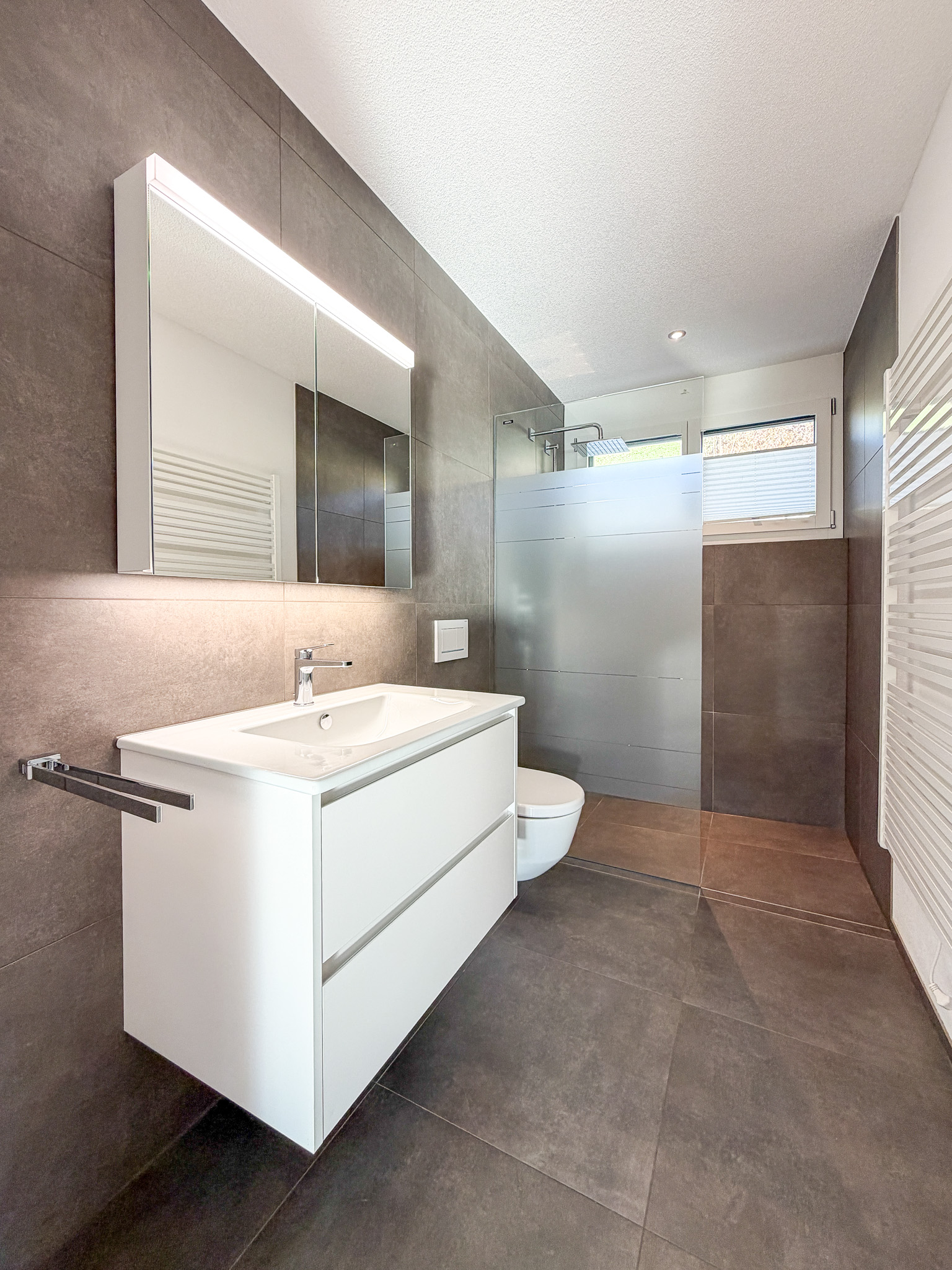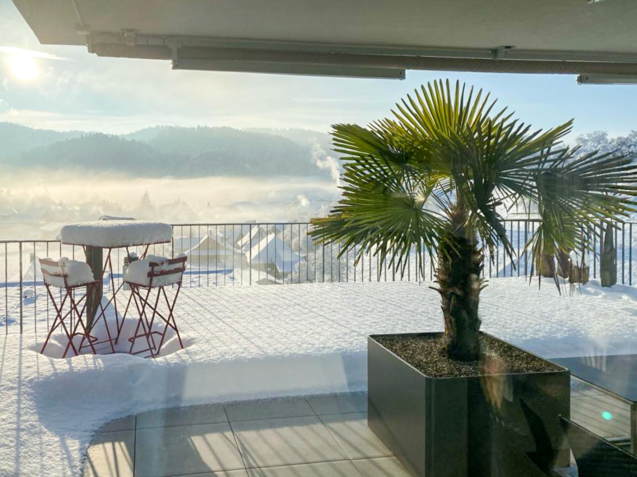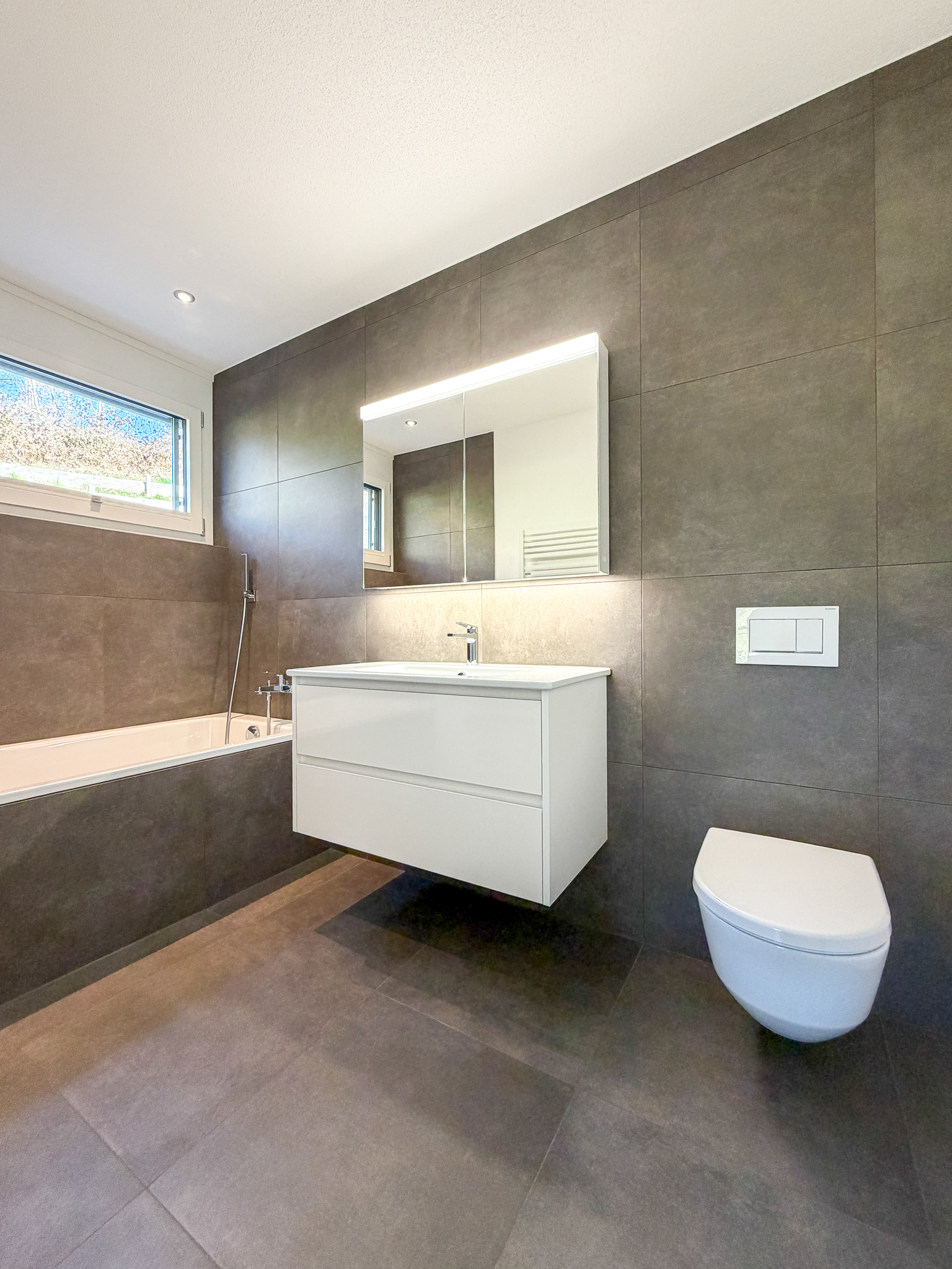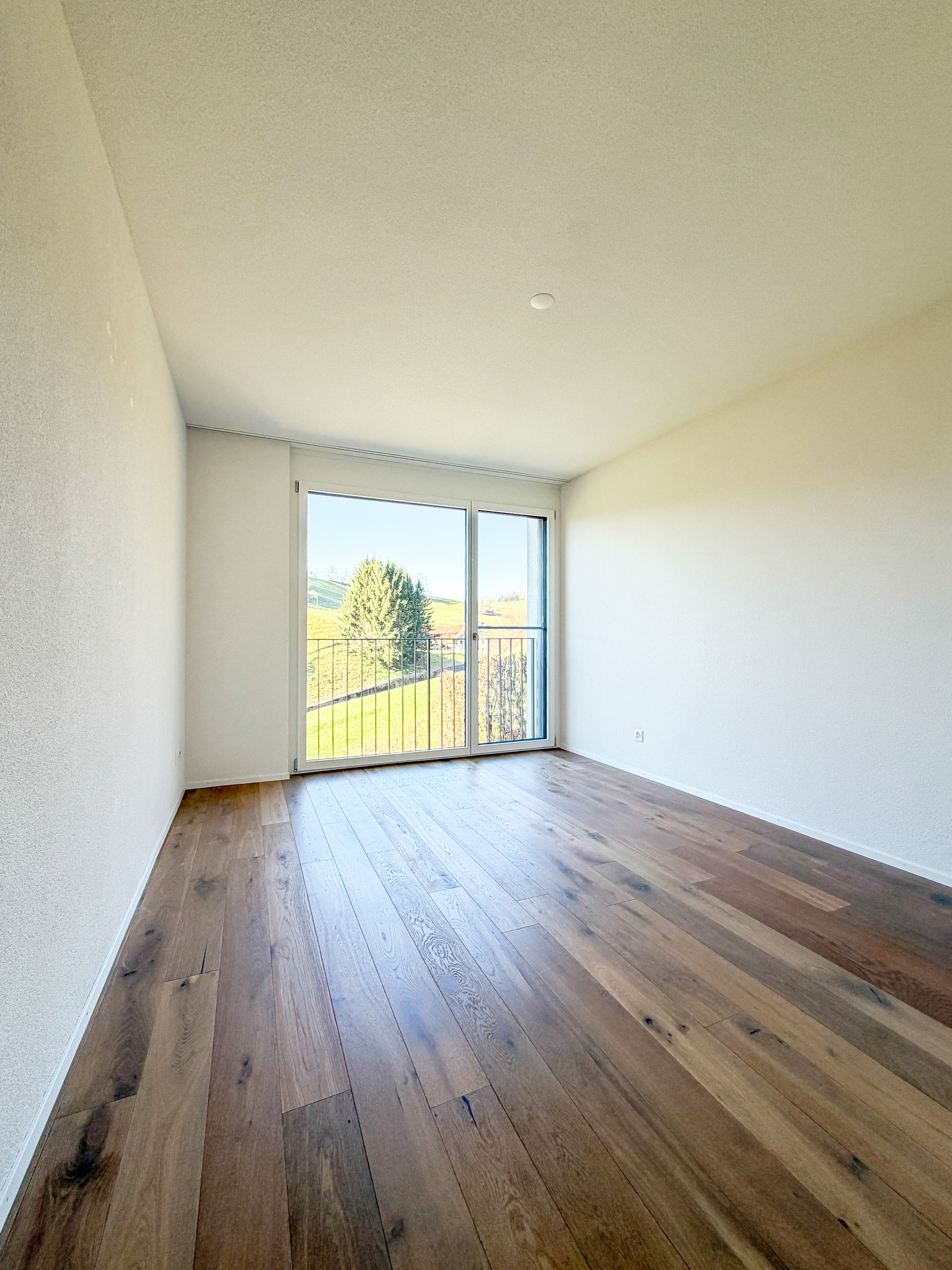 Die moderne und grosszügige Attikawohnung liegt an erhöhter Lage in Krauchthal mit wunderbarer Sicht ins Grüne. Die Wohnung ist Teil von zwei baugleichen 3-Parteienhäusern mit Baujahr 2020. Die Attikawohnung verfügt über einen modernen Grundriss mit grosszügigem offenem Wohn-/Essbereich mit Schwedenofen sowie offener integrierter Küche (total 63 m²) mit direktem Zugang zur Terrasse (72 m²). Die Terrasse ist über den gesamten Essbereich / Küche via bodenebene Fensterfronten zugänglich und bietet eine schöne Sicht ins Grüne / Richtung Südwest und verfügt zudem über einen grossen gedeckten Bereich. Ebenfalls im südwestlichen Teil der Wohnung liegt ein Zimmer mit 16 m² Fläche, ein weiteres Zimmer (14 m²) mit begehbarem Kleiderschrank (4 m²) liegt auf der Nordostseite. Direkt mit diesem Zimmer verbunden ist das Badezimmer mit Badewanne (6 m²). Beim Eingangsbereich befindet sich ein weiteres Badezimmer (5 m²) mit Dusche sowie ein praktisches Reduit (5 m²). Durch die geschickte Raumaufteilung sowie den hochwertigen und stilvollen Innenausbau ist die Wohnung sehr hell und freundlich und verfügt über eine luftige und gleichzeitig heimelige Wohnatmosphäre. Die Wohnung wird heute als 3.5 Zimmerwohnung genutzt, könnte aber mit einfachen Massnahmen zu einer 4.5-Zimmerwohnung umgenutzt werden. Zur Wohnung gehört eine eigene Waschküche (12 m²), ein grosser Kellerraum (12 m²) sowie ein Einstellhallenplatz (Nr. 4). Die Einstellhalle ist mit einer Basisinstallation für die Elektromobilität ausgerüstet (der Einstellhallenplatz kann bei Bedarf angeschlossen werden). Das Untergeschoss sowie die Einstellhalle sind bequem via Lift erreichbar; der gesamte Bereich inkl. der Wohnung ist stufenlos.