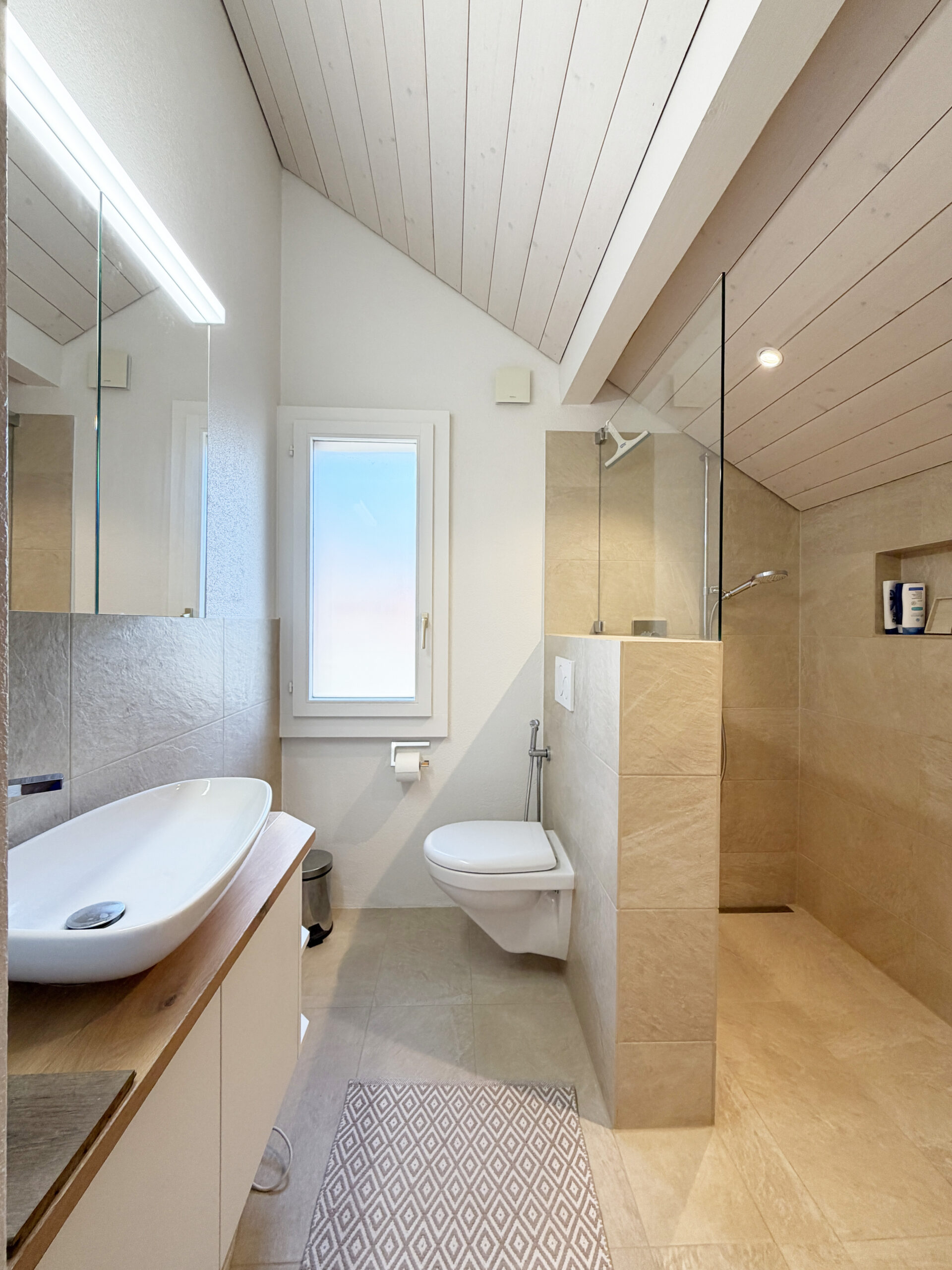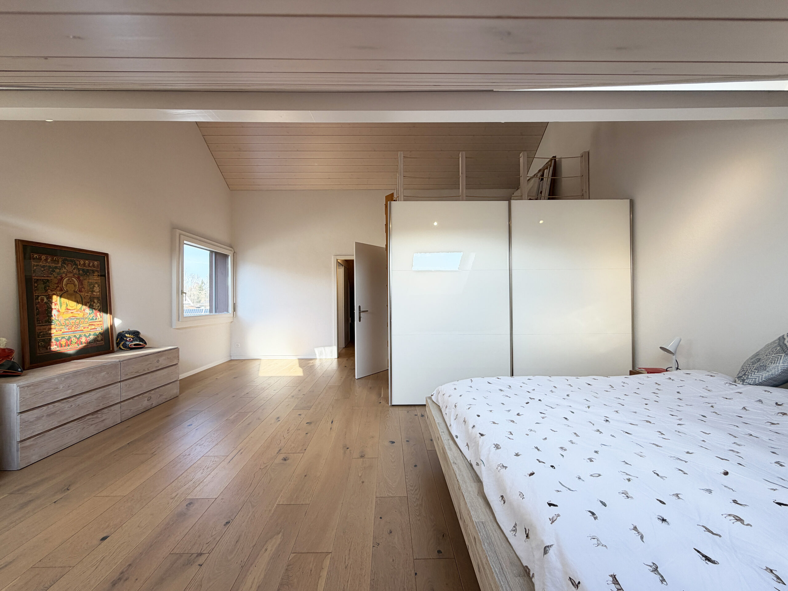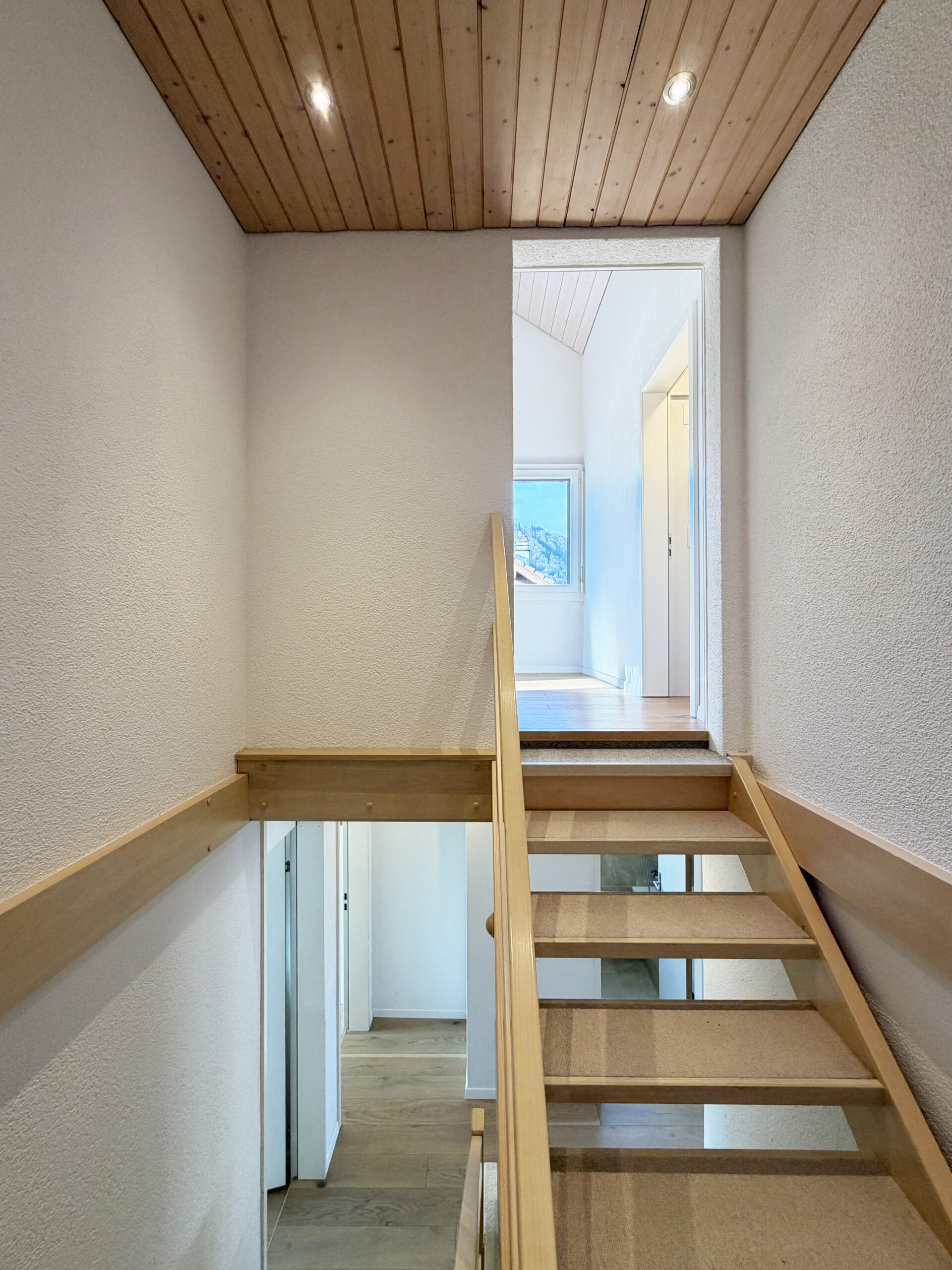 Das charmante Eigenheim mit Baujahr 1972 liegt in einem ruhigen Wohnquartier in Münsingen in Gehdistanz zur Aare. Das Gebäude verfügt über zwei Vollgeschosse und ein Dachgeschoss. Der grosszügige Eingangsbereich (12 m²) mit Garderobe und sep. WC befindet sich auf Seite Aareweg, der Rest des Sockelgeschosses auf der Gebäudesüdseite liegt unter Terrain und beherbergt die Waschküche, den Haustechnikraum mit dem Boiler, einen grossen Kellerraum mit direktem Gartenausgang via Treppenanlage sowie einen Schutzraum mit zusätzlichem Stauraum. Das Erdgeschoss ist vom Eingangsbereich via eine schöne offene Treppe abgegrenzt. Hier befindet sich ein grosser offener Wohn-/Essraum (32 m²) mit Cheminée und grossflächigen Fensterscheiben Richtung Garten sowie die ebenfalls offene und moderne Küche (8 m²). Im Obergeschoss befinden sich vier Zimmer (9 m², 9 m², 11 m² und 14 m²), zwei davon mit Zugang zum grosszügigen Südbalkon (10 m²) sowie das Badezimmer mit Dusche (5 m²). Das Dachgeschoss beherbergt nochmals ein Badezimmer (4 m²) mit angrenzendem Dachzimmer (15 m²) sowie einem grossen offenen Raum (40 m² ) mit geschickt eingebautem Galeriebereich über dem Treppenaufgang. Die Wohnfläche beläuft sich auf total 170 m². Geheizt wird seit 2025 mit einer Luft-Wärmepumpe. Zur Liegenschaft gehört zudem eine Garage inkl. Garagenvorplatz. Das Grundstück ist 315 m² gross. Auf der nördlichen Gebäudeseite liegt die Garage inkl. Garagenvorplatz sowie der Gebäudezugang. Auf der südlichen Gebäudeseite befindet sich der grosse idyllische Garten à 180 m² Fläche mit schönen Sträuchern und Bäumen sowie einer grosszügigen Grünfläche. Das Garagendach liegt ebenerdig zur Gartenfläche, ist begrünt und kann als Gartenfläche genutzt werden. Vor dem Wohnzimmer befindet sich ein geschützter/gedeckter Sitzplatz. Durch die leicht versetzte Bauweise des Nachbarhauses bietet der Sitzplatz wie auch der Garten viel Privatsphäre.