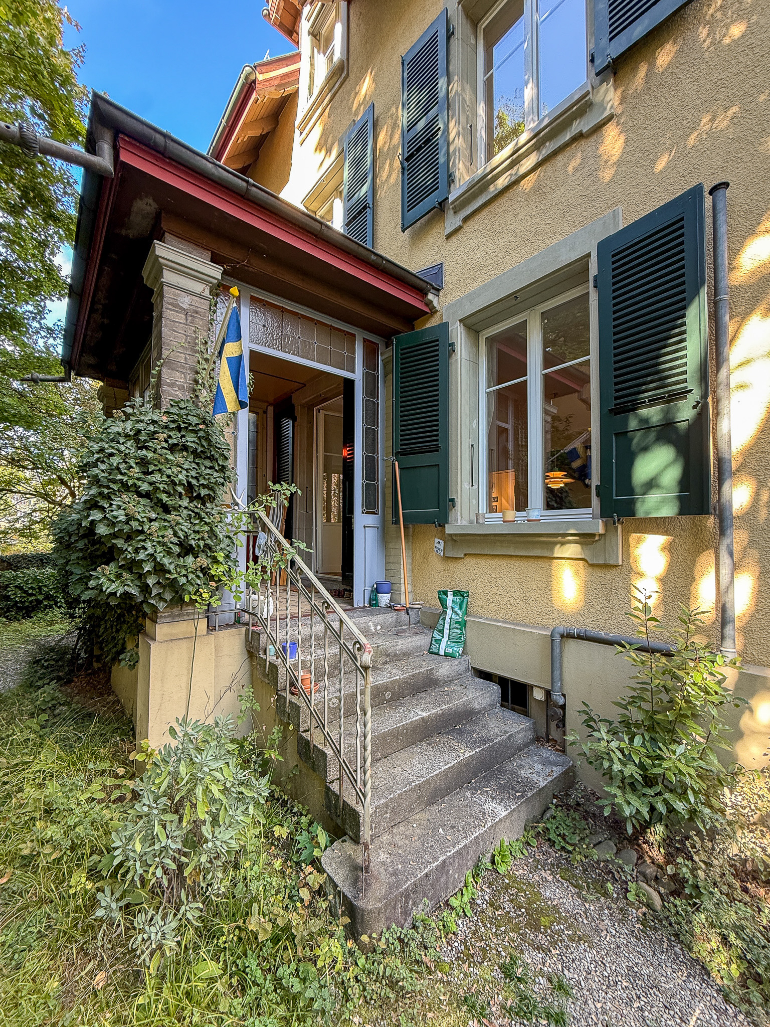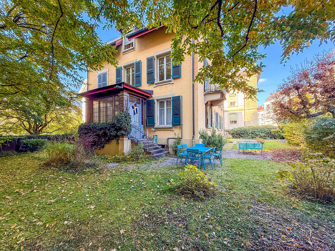 TermineDie Gartenwohnung ist Teil eines freistehenden 3-Familienhauses an der Bühlstrasse 44 im Herzen des Länggass-Quartiers der Stadt Bern. Die Bühlstrasse ist eine ruhige Querstrasse zur Länggasse und ist wenig befahren (30er-Zone). Die Liegenschaft ist ein repräsentativer Bau aus der Übergangszeit zwischen Jugend- und Heimatstil aus dem Jahr 1887 sowie Anbau aus 1903. Die Liegenschaft ist im Bauinventar der Stadt Bern in der Schutzkategorie „beachtenswert“ aufgeführt (keine rechtswirksame Einstufung). Das Gebäude besteht aus zwei Vollgeschossen und einem Geschoss im Mansardendach und ist ganzflächig unterkellert. Die Gartenwohnung liegt im Hochparterre der Liegenschaft und ist von zwei Seiten von einem privaten Garten umgeben. Die Wohnung verfügt über einen grossen offenen Wohnbereich (28 m²) mit schönem Kachelofen und Laube mit Originalverglasung/Treppenabgang in den Garten, einer grosszügigen Küche (10 m²), vier Zimmer (11, 15, 16 und 16 m²) sowie zwei Nasszellen – ein Badezimmer mit Badewannen-Nische (7 m²) und ein separates WC. Die Wohnung verfügt noch über viele schöne Details aus der Bauzeit wie die wunderbar erhaltenen Parkettböden (Fischgrat- und Kassettenparkettböden mit Einlegearbeiten), die schönen ursprünglichen Türblätter, schönen Täferwänden und Original-Einbauschränken. Die Küche sowie die Nasszellen datieren aus 1997. Die Wohnfläche beläuft sich auf total 124 m² (inkl. Laube), die Raumhöhe beträgt 2.75 m. Der Wohnung zugeteilt ist ein Kellerabteil (6 m²). Die Wohnung verfügt über einen grossen privaten Gartenbereich von 215 m² Fläche vor der Wohnung (der gesamte Südostteil vor dem Gebäude sowie der Westteil beim Laubenabgang). Der Garten verfügt über eine schöne Bepflanzung mit Sträuchern und einer Hecke sowie einem schönen Sitzplatz (Kiesbelag). Zur allgemeinen Benutzung steht zudem ein offener Gartenunterstand, ein gedeckter Veloabstellplatz und im UG ein grosser Bastelraum mit Gartenaufgang, die Waschküche und der Trockungsraum.
