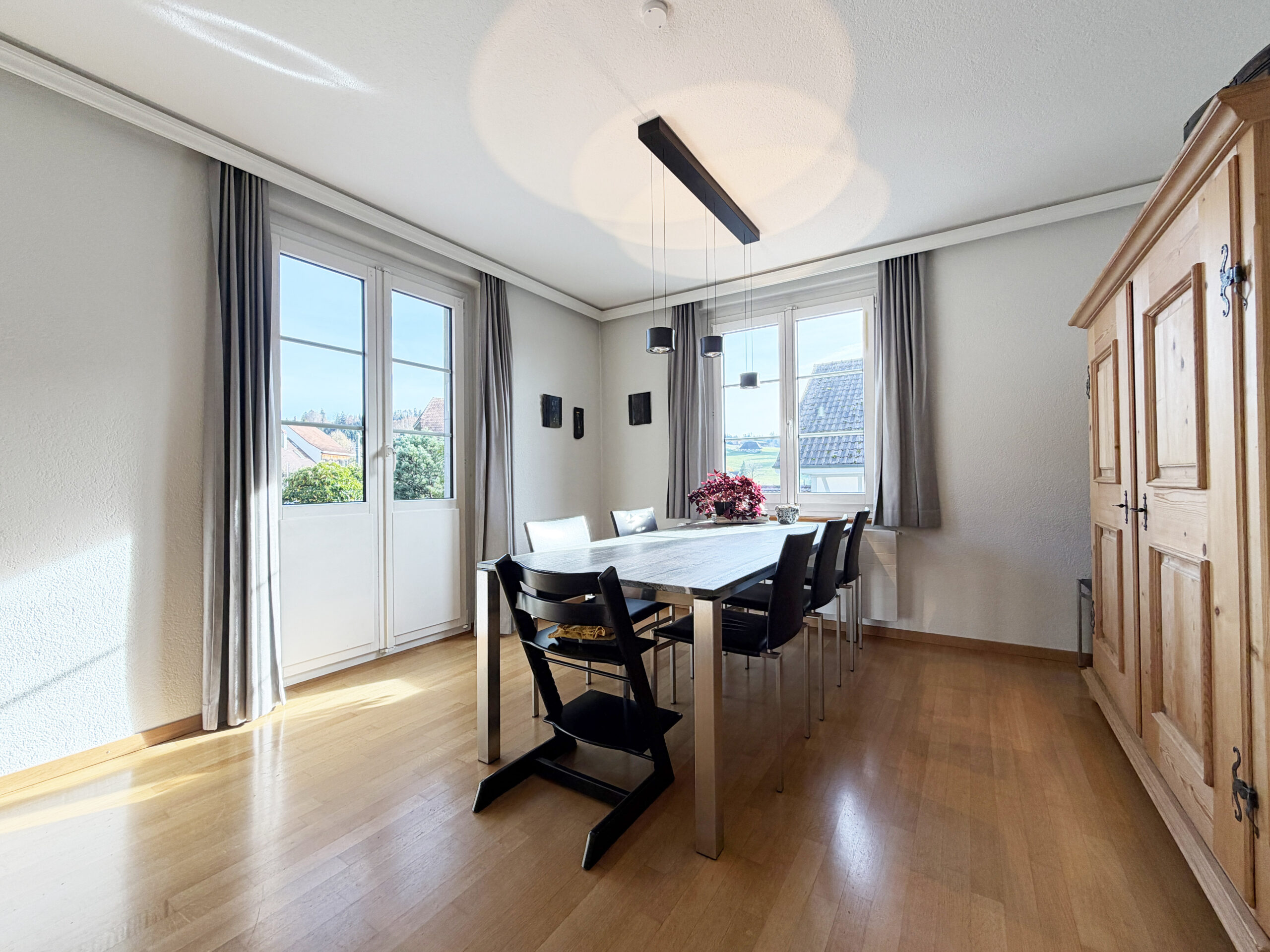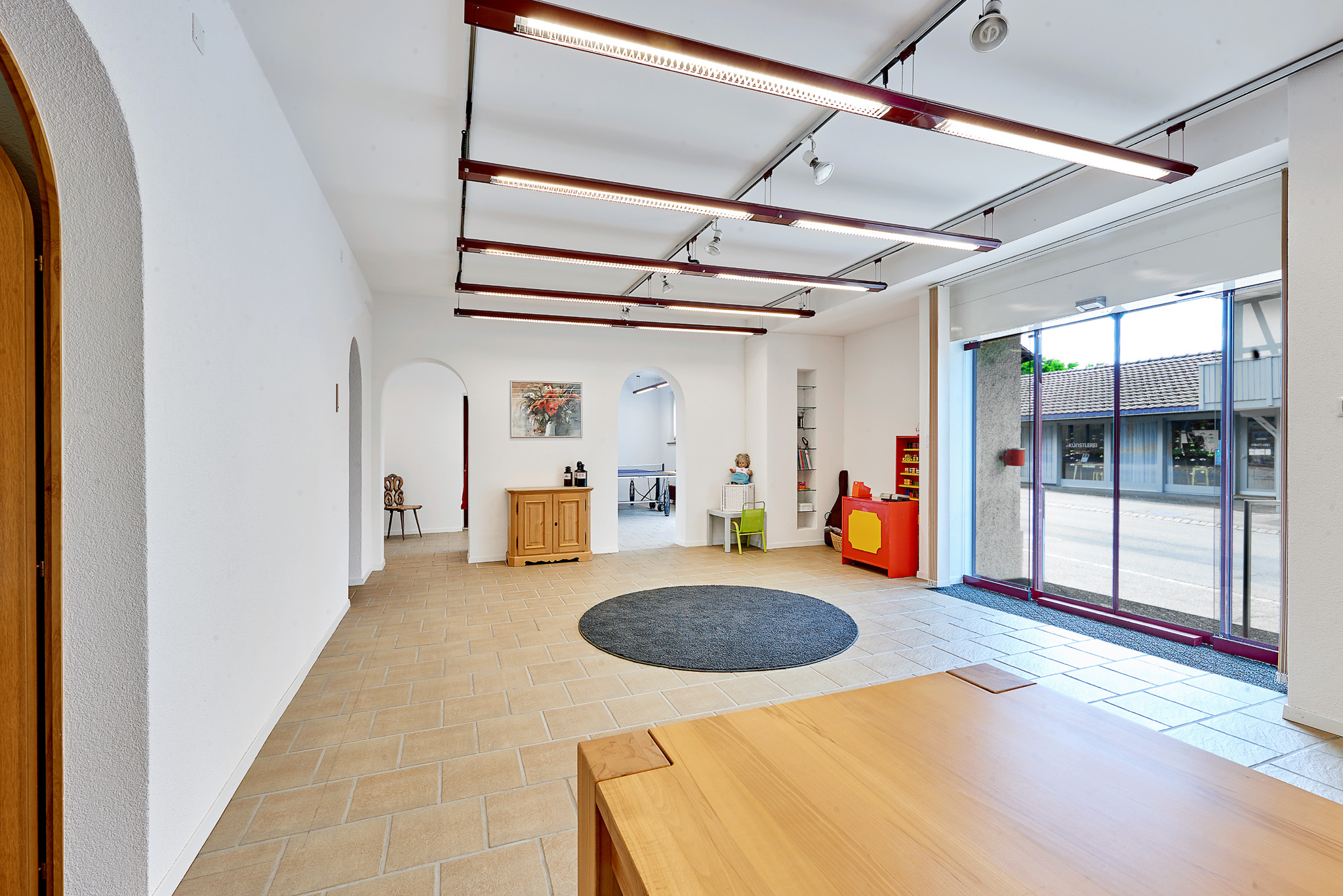 TermineDie charmante Liegenschaft mit Baujahr 1936 und Erweiterung aus 1953 liegt im historischen Dorfkern von Niederscherli in der Gemeinde Köniz. Sämtliche Angebote des täglichen Bedarfs wie Einkauf, Schulen und ÖV sind in kurzer Gehdistanz erreichbar. Die Liegenschaft verfügt im Erdgeschoss über ein separates Zimmer mit Waschgelegenheit sowie eine grosse Verkaufsfläche mit eigenem Zugang, die aber zu Wohnzwecken umgenutzt werden könnte (87 m² Wohn-/Nutzfläche). Im Ober- und Dachgeschoss befindet sich eine abgeschlossene 6-Zimmerwohnung mit einer 60 m² grossen, wunderbar sonnigen und begrünten Terrasse. Im Obergeschoss befinden sich die Küche, eine Dusche mit Waschturm, ein separates WC, der schöne Wohnraum mit Schwedenofen und Balkon sowie das Esszimmer mit Zugang zur Terrasse. Das Dachgeschoss beherbergt nochmals vier Zimmer und ein Badezimmer. Im Untergeschoss unter dem Haupthaus liegen Heizungsraum und Pelletlager sowie drei Kellerräume (zwei davon beheizt) mit separatem Zugang. Unter dem Anbau sind drei grosszügige, zwangsbelüftete Lagerräume, ein separates WC und eine Teeküche. Zur Liegenschaft gehören zudem drei Aussenabstellplätze (eigenen Parzelle) vor dem Gebäude. Eine geschlossene Garage im Gebäude Schwarzenburgstrasse 822 ist zugemietet. Die Wohnfläche beläuft sich auf total 153 m², die Verkaufsfläche im EG auf weitere 87 m² Fläche. Geheizt wird seit 2022 mit einer Pelletheizung.